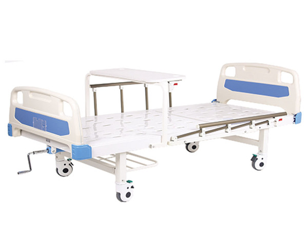 A7型 ABS床頭沖孔單搖床 1、規(guī)格:L2150*W900*H500mm 2、床頭、床尾采用ABS高級工程塑料吹塑而成,外形美觀,裝卸自如,抗沖擊性、耐熱性、耐低溫性、耐化學藥品性及電氣性能優(yōu)良,整體家居木紋風格,優(yōu)雅舒適。 3、床面采用優(yōu)質冷軋鋼板一次沖壓成型,厚度1.2mm,凹型多氣孔設計,便于透氣并具有防滑功能。表面無焊點,背部有鋼管加強筋,采用雙支撐卸力結構,延長病床壽命。 4、床體骨架采用40*60*1.5mm的成型方管焊接而成。先進的焊接工藝,焊接質量優(yōu)質,床體堅固,可承載≥240kg。 5、整體床體采用酸洗、磷化、水洗、氧化等一系列工藝,全自動流水噴涂線,使用阿克蘇粉末靜電噴涂,色澤鮮亮,附著牢固。 6、護欄采用折疊式護欄,管材為優(yōu)質鋁合金材料,護欄立柱上下連接件為ABS塑料材質,堅固耐用,使用方便,護欄操作手柄具防夾手設計,不使用時可折疊放于床框上,操作方便。 7、四輪采用125mm豪華靜音四腳剎車輪,高穩(wěn)定連動系統(tǒng),剎車穩(wěn)定靈活、方便.防水、防塵。 8、配置不銹鋼隱藏式搖把,可以隱藏于床體,避免不必要的傷害,方便護理人員操作,具有雙向極限保護設置。絲杠采用20mm/40Cr材質,不變形,回旋體為鋅合金壓鑄工藝,絲杠結合部采用銅棒加工制作的銅母,與絲杠密切咬合密切、有效地防止磨損、噪音小,壽命長。 9、功能簡介:(1)靠背:0-80±5o。 標準配置 選配附件 ABS床頭一副 鋁合金護欄 不銹鋼隱藏式搖把絲杠1套 豪華靜音四腳剎車輪 輸液插孔四個 專用床墊 引流掛鉤 不銹鋼伸縮式輸液桿 鋼制雜物架 ABS翻轉式餐桌板